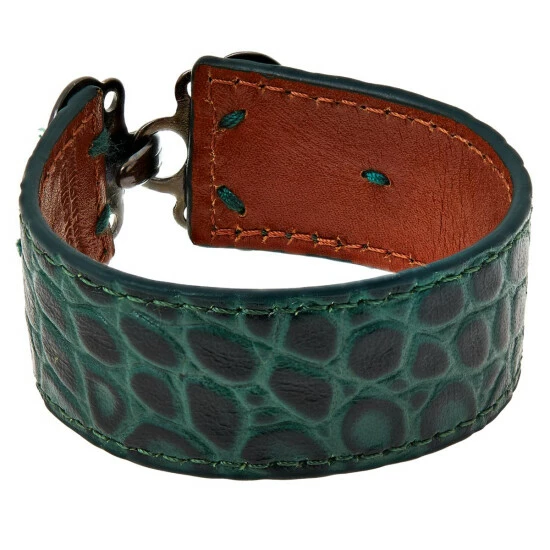 Tooled leathers adorn this filigree-clasp bracelet, a clever and versatile play on Patricia’s handbag designs, and a wonderful addition to your jewelry wardrobe.