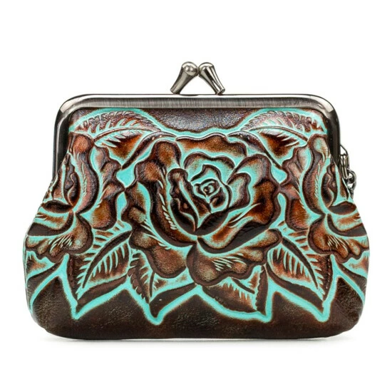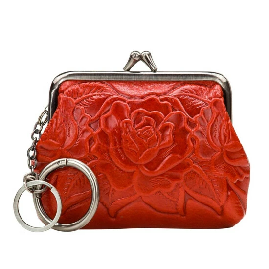Make a big fashion statement withthissmall, vintage-inspired coin purse. Perfectly sized to handle more than just change, this kiss-lock frame top ornament with key fob and trigger claspadds fashionable functionality to your everyday handbag.