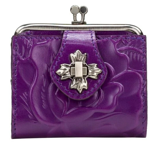 | Style: | Petite, vintage-inspired bifold wallet/coin purse with rose tooling detail |