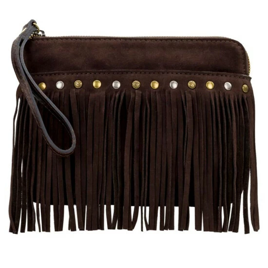 A sleek companion, the Cassini wristlet is beautifully crafted inbrushed Italian nubuckwith studs to give it a flirty, boho-chic appeal. This compact accessory is just the right size to carry essentials without weighing you down. When you don’t need a larger bag, use the handy wrist strap to grab the Cassini and go.