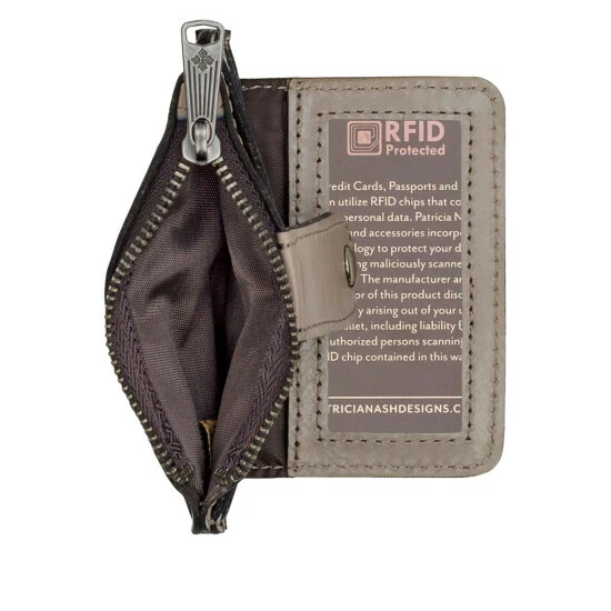| Interior: | 3 credit card slots at back, 2 credit card slots on front, 1 zipper coin pocket |