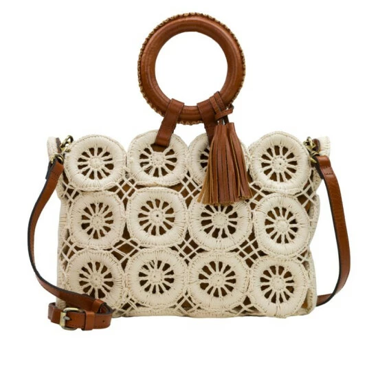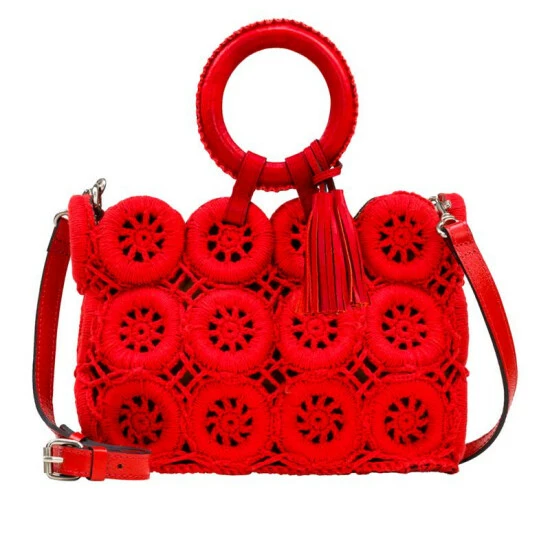 The Varinella large tote from Patricia Nash bringsa fresh, summery update to your collection. The exquisite craftsmanship of the cotton, crocheted rings, leather tassels and eye-catching round handles ensure that you’ll stand out from the crowd. And with its roomy interior, it’s perfect for carrying everything you need – and more!