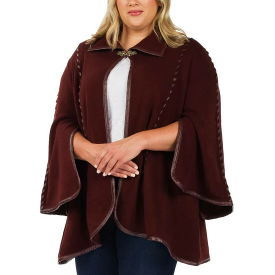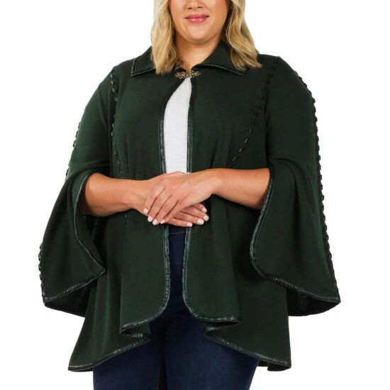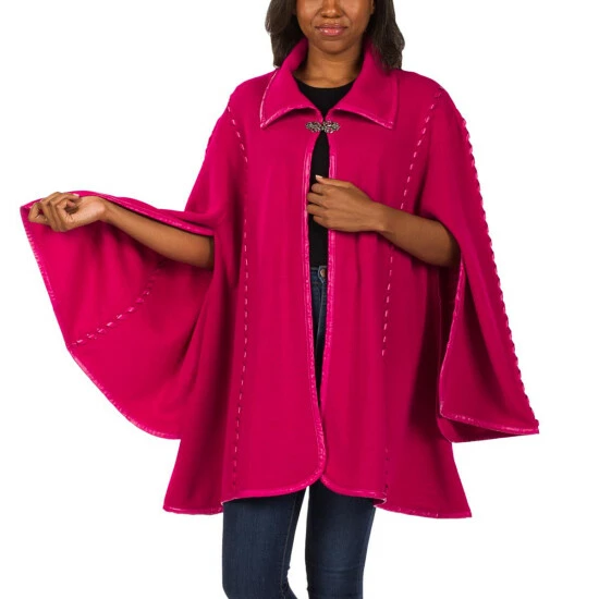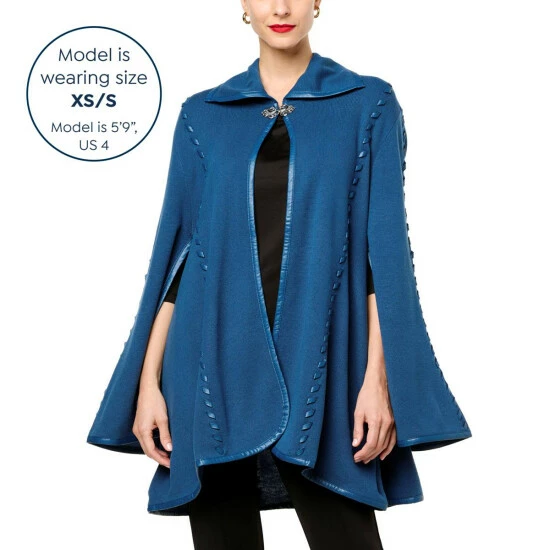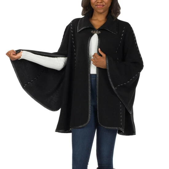 You may not be able to leap tall buildings in a single bound or run faster than a speeding bullet, but you’re a superhero in your own right. You take care of your family. You juggle multiple tasks and jobs at the same time… all while trying to look your best. You’ve earned your cape. A very fashionable one. This vintage design from Patricia Nash is just what you need to complete your wardrobe. With open, drapedsleeves, a wingcollar andfaux leather trim, you’ll be able to stop traffic with a single glance.
